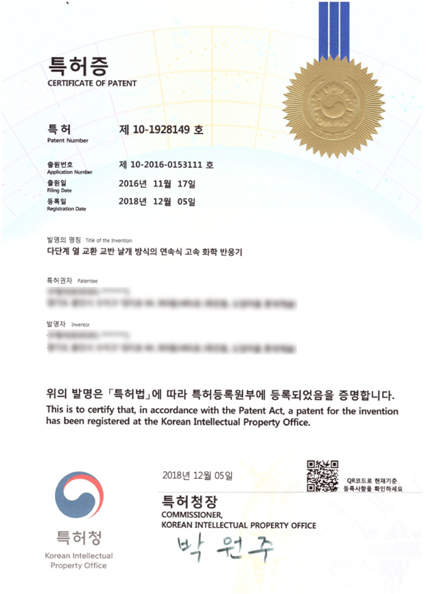 기체와 액체를 고속으로 접촉하는 특허기술*,** 탑재