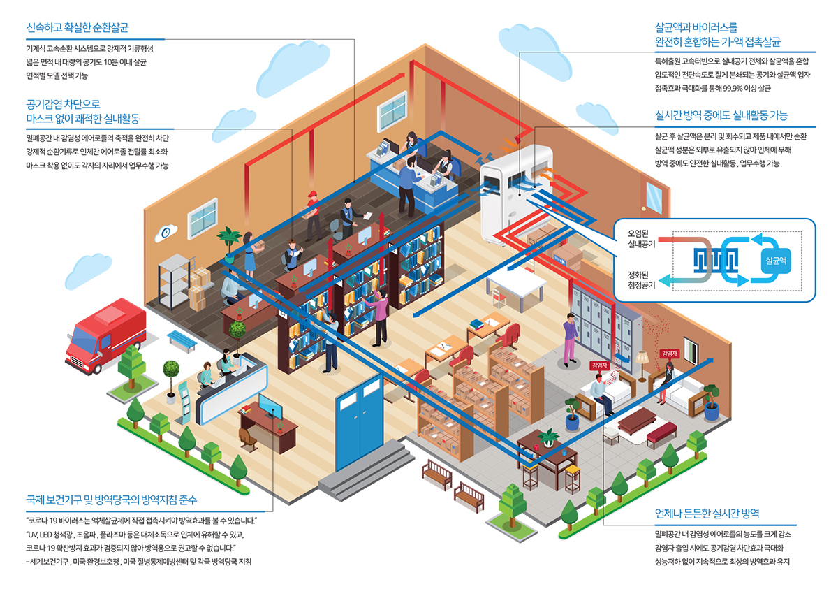 공기 중 바이러스의 농도 상승을 원천적 차단
